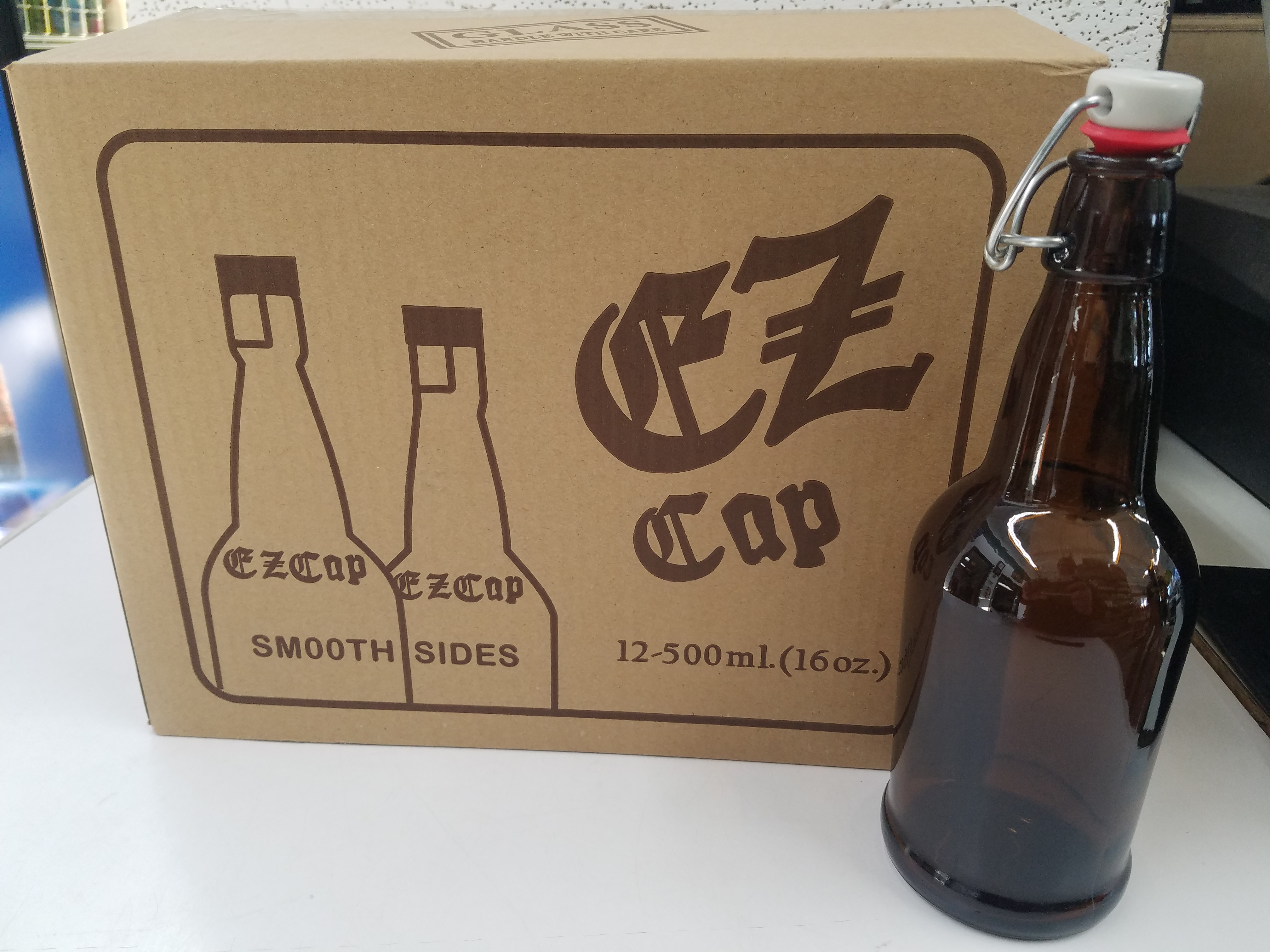 16 OZ. EZ CAP BEER BOTTLE- AMBER- CASE OF 12. EZ CAP BEER BOTTLES ARE GREAT BECAUSE THEY DO NOT REQUIRE A CAPPER, SINCE THEY COME COMPLETE WITH GROLSCH-STYLE SWING-CAP (INCLUDED). THE RUBBER GASKETS WILL LAST FOR AT LEAST 5 OR 6 USES. 12 BOTTLES TO A CASE.
